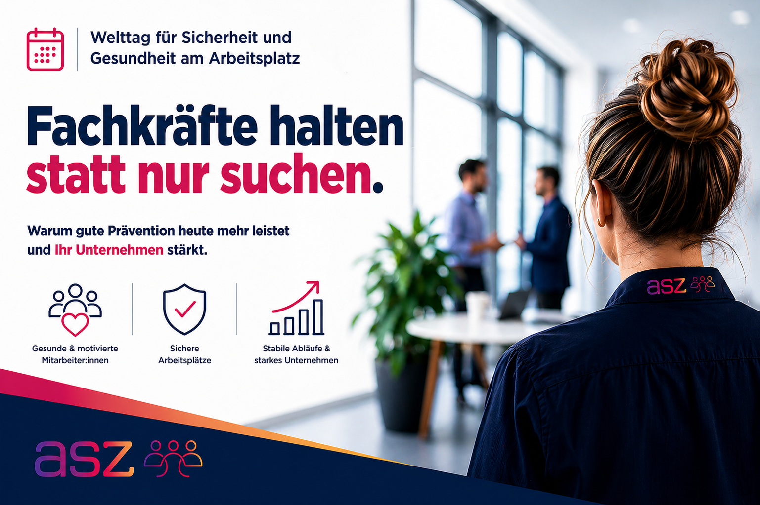 Zum Welttag für Sicherheit und Gesundheit am Arbeitsplatz zeigt das asz, warum Arbeitsfähigkeit, Mitarbeiterbindung und vernetzte Prävention für Unternehmen immer…